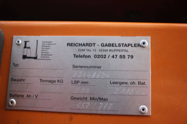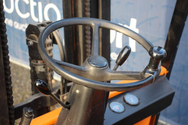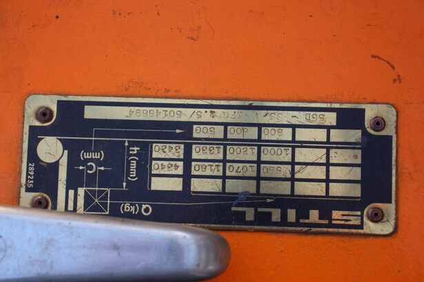 Brand: Still Type: 55D-SS Serial number: 50148694 Year of construction: 1991 Fuel: Electric Mast type: Triplex Sideshift: Yes Lifting height: 4340 mm Operating hours read: 20189 h Machine weight: 2896 kg Tires: Solid tires Color: yellow