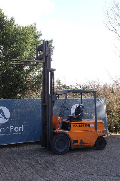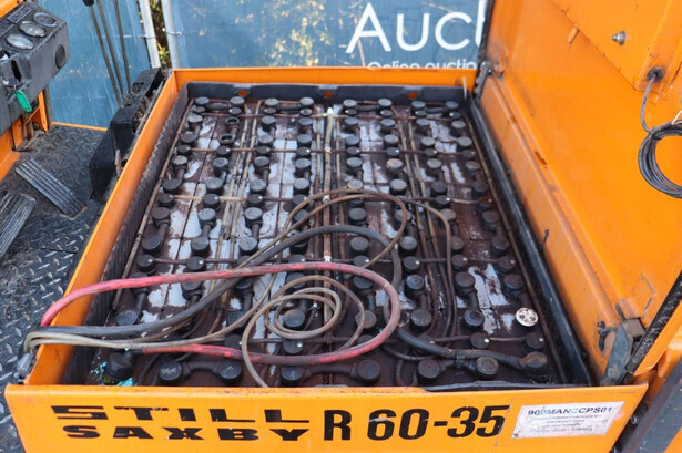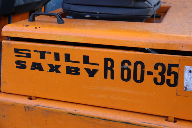 Brand: Still Type: R 60-35 Serial number: 60150696 Year of construction: 1991 Fuel: Electric Mast type: Duplex Sideshift: Yes Lifting capacity: 3500 kg Tires: Solid tires Color: orange