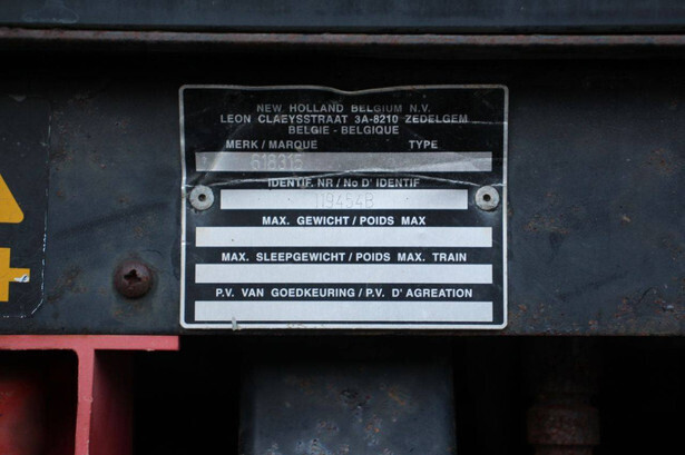 Brand: New Holland Type: TS90 Serial number: 119454B Year of construction: 1999 Fuel: Diesel Engine power: 90 HP Reading operating hours: 1327 h Machine weight: 4409 kg Tires: Pneumatic tires Color: blue