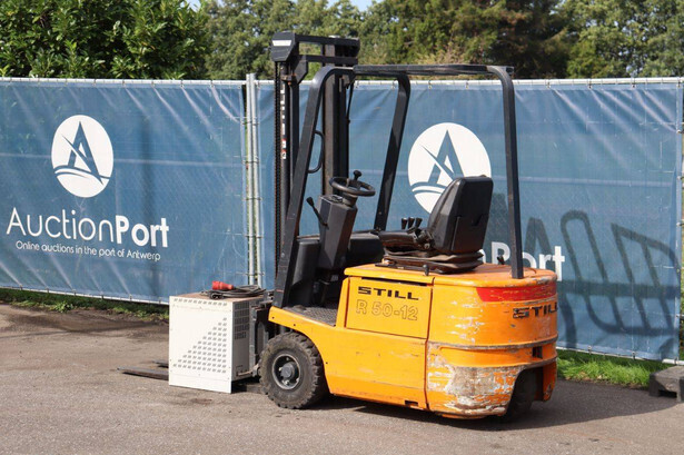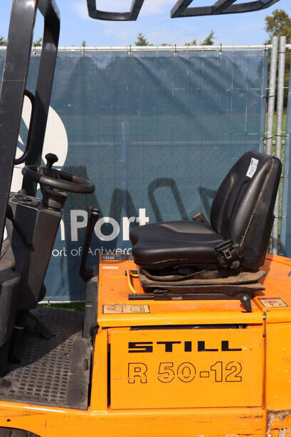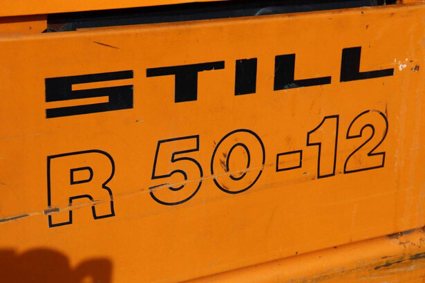 Brand: Still Type: R50-12 Serial number: 515043027615 Year of construction: 2002 Fuel: Electric Mast type: Duplex Sideshift: Yes Lifting capacity: 1200 kg Lifting height: 4298 mm Operating hours read: 7164 h Machine weight: 2400 kg Tires: Solid tires Color: orange