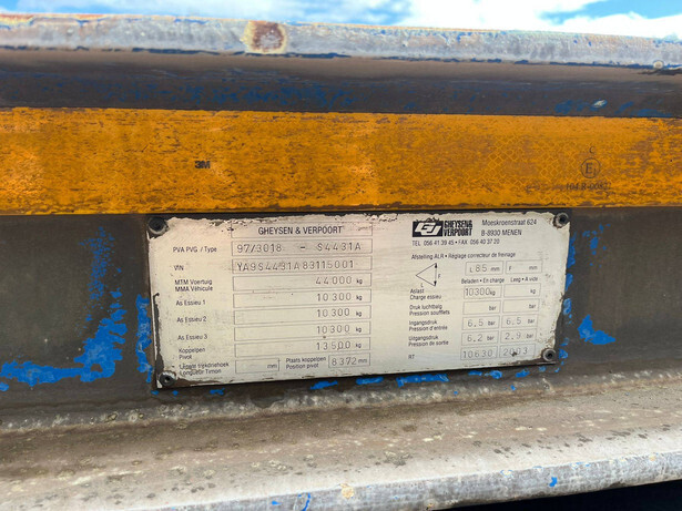 Brand: Gheysen and Verpoort Type: 97/3018-S4431A Serial number: YA9S4431A83115001 Year of construction: 2003 Load capacity: 44000 kg Number of axles: 3