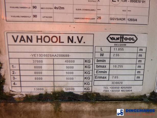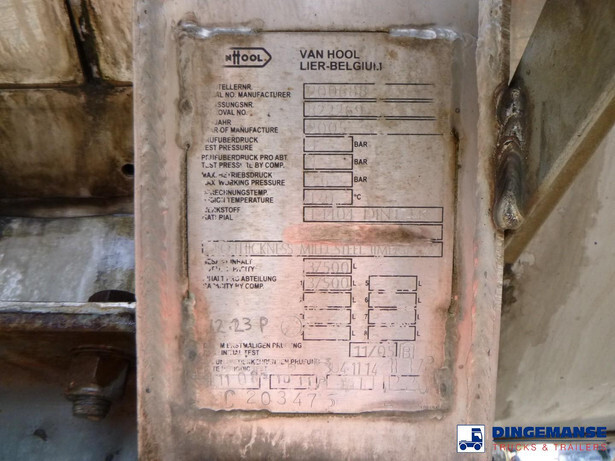 Stainless steel insulated chemical tank, Capacity 37500 liters, 1 Compartment, Year of manufacture 2005, Tank material code 1.4404 DIN17441, Test pressure 4.0 bar, Max working pressure 2.6 bar, Hydraulic pump, Steam heating, Disc brakes, SAF axles, Alloy rims (4 rims), ABS, Air suspension, Shipment dimensions 1165x250x360 cm