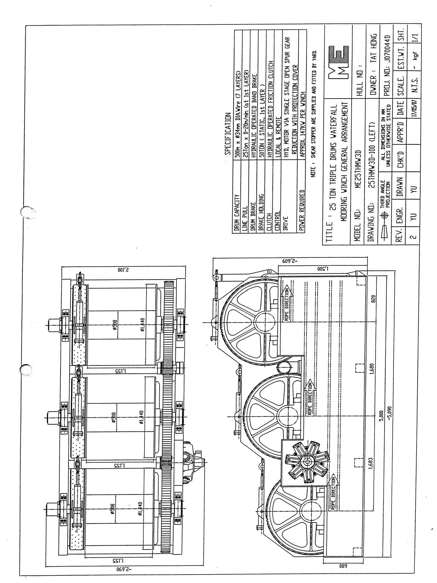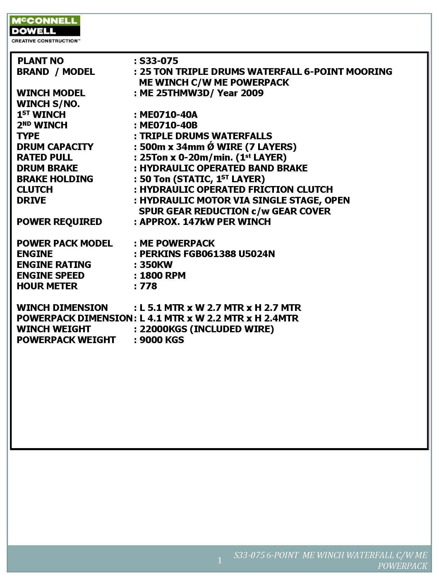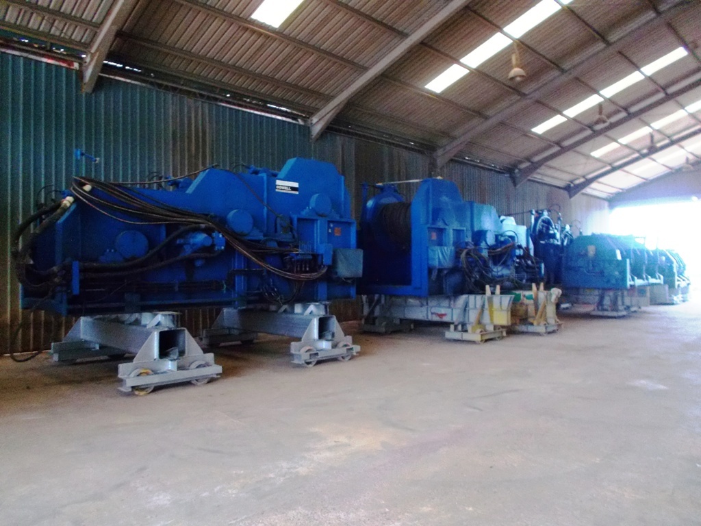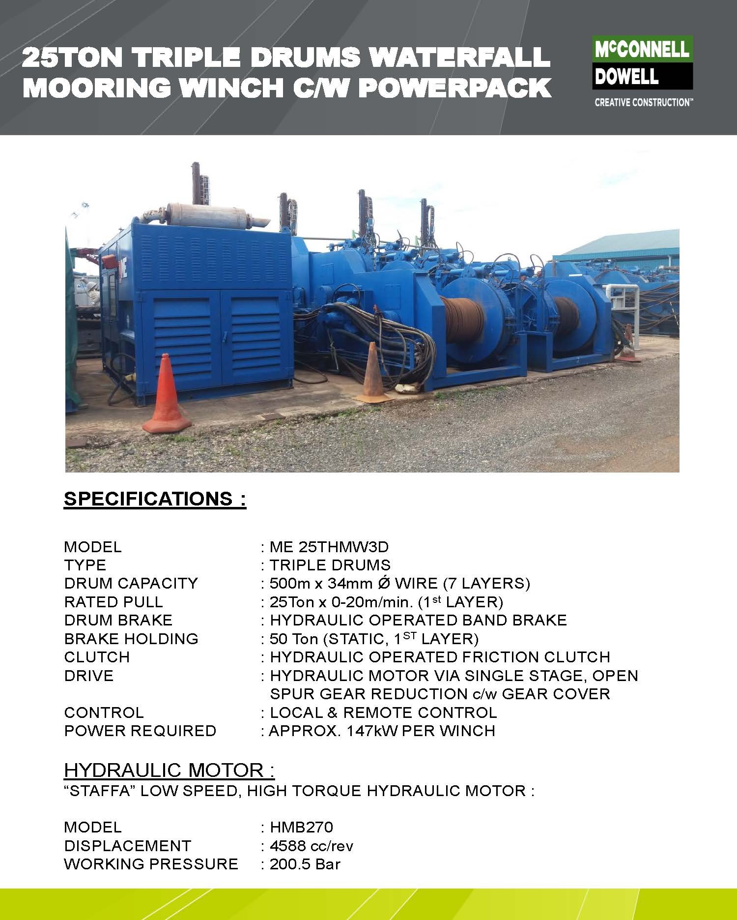 Currently Available 2 sets of 6-point 25t Triple drum Water Fall type winches with Power pack.