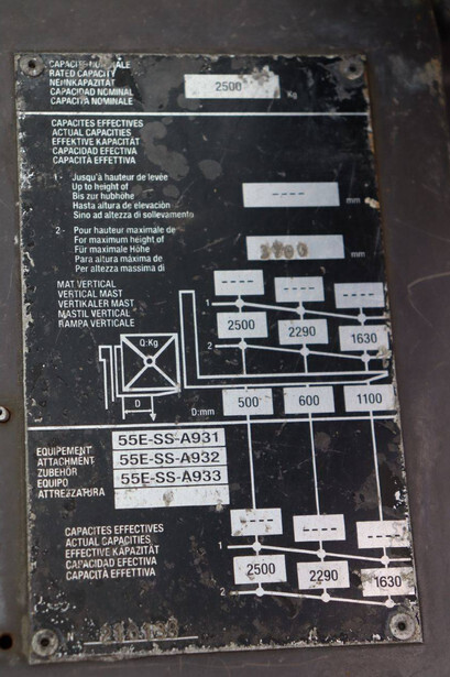 Brand: Manitou Type: MSI25 Serial number: 1264040 Year of construction: 2009 Fuel: Diesel Mast type: Duplex Sideshift: Yes Lifting capacity: 2500 kg Lifting height: 3700 mm Operating hours read: 5265 h Machine weight: 4070 kg Tires: Solid tires Color: red