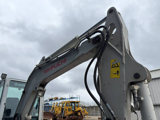 The Takeuchi TB235 is a robust and reliable mini excavator, ideal for a range of projects. It features a Yanmar 3KNPA engine delivering 22.2 kW power, ensuring efficient performance. Equipped with EPA and CE certifications, this machine is built with an offset boom and offers a stick length of 1.60m. It is fitted with a hydraulic quick release, a ditch cleaning bucket measuring 1.20m in width, and an additional bucket of 0.35m width. The TB235 is piped for hammer and shear and is maintained in good and very clean condition. It includes an AM/FM radio for operational comfort. Weighing 3505 kg and manufactured in 2010, this mini excavator has been used for 5452 hours.