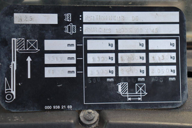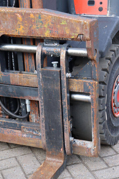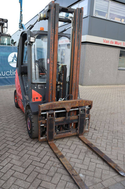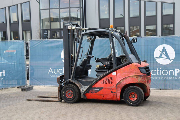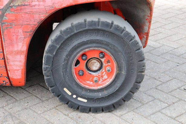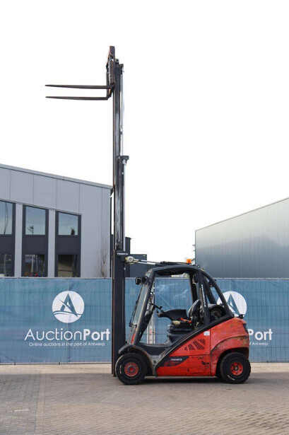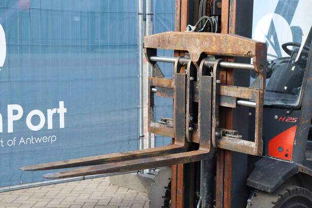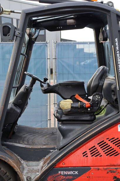 Brand: Fenwick-Linde Type: H25T-02 Serial number: H2X392D50522 Year of construction: 2013 Fuel: LPG Mast type: Plywood Sideshift: Yes Lifting capacity: 2500 kg Lifting height: 5515 mm Recorded operating hours: 14,731 hours Machine weight: 3970 kg Tires: Solid tires Color: red