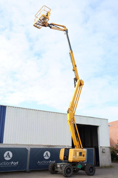 Brand: Haulotte Type: HA16 RTJ PRO Serial number: 2009157 Year of construction: 2016 Fuel: Diesel Lifting capacity: 230 kg Working height: 10 m Operating hours read: 3138 h Machine weight: 6950 kg Chassis: Wheels Type: Articulated boom lift Tires: Non-marking tires Color: yellow