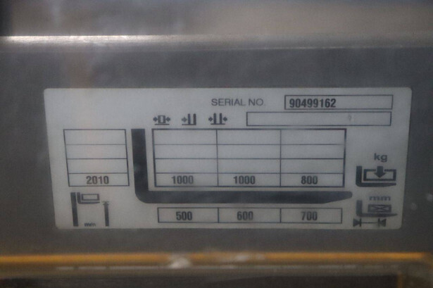Brand: Jungheinrich Type: ERD 220 KP Serial number: 90499162 Year of construction: 2016 Fuel: Electric Mast type: Duplex Lifting capacity: 2000 kg Lifting height: 2010 mm Operating hours read: 12186 h Machine weight: 1216 kg Color: yellow