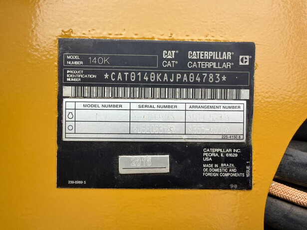 The Caterpillar 140K is a robust motor grader built in 2018, featuring a 143 kW Caterpillar C7 engine. It is equipped with air conditioning, a push block, ripper, and a high profile EROPS cabin. The machine is enhanced with an auto shift and hydraulic tip control, providing optimal performance. The center blade width is 4.27 meters. This unit has certified hours by Caterpillar and is in very good and clean condition, ready for immediate use.
