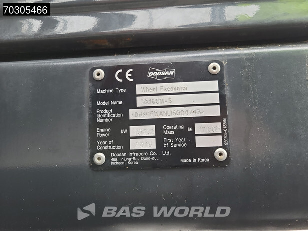 احصل على تقرير فحص مفصل لـ 2018 دووسان DX160W-5 واشتري المعدات براحة بال تامة.