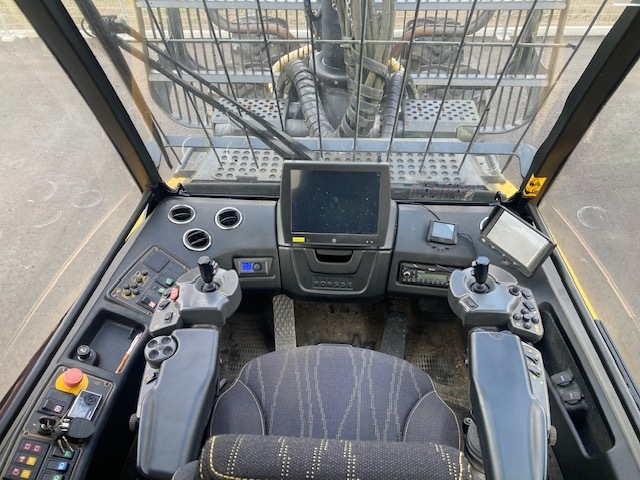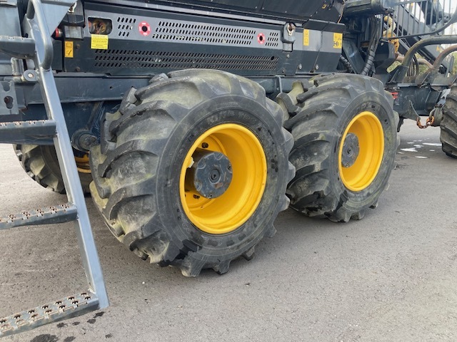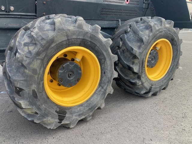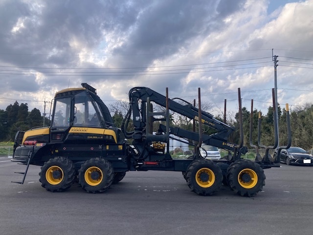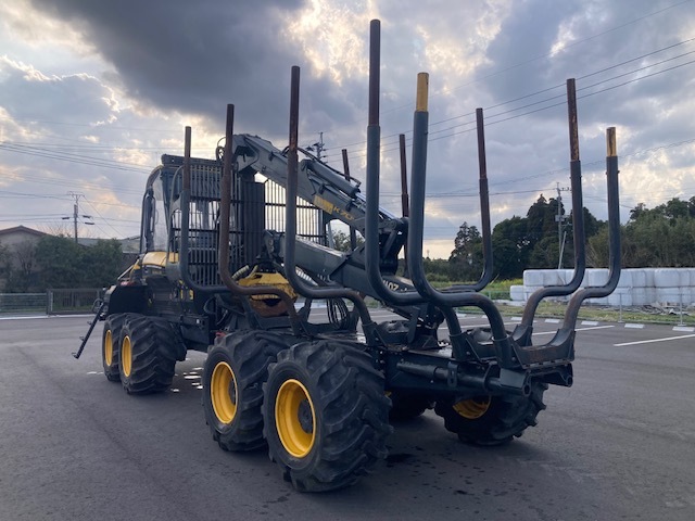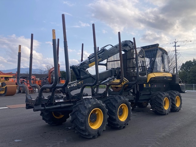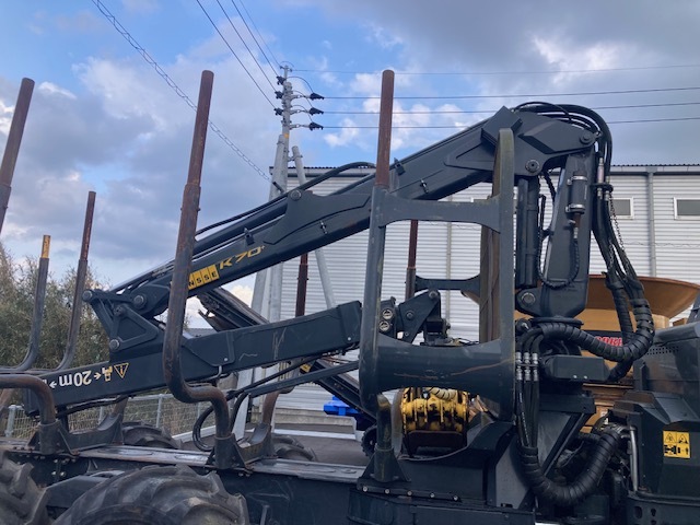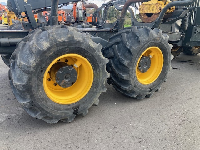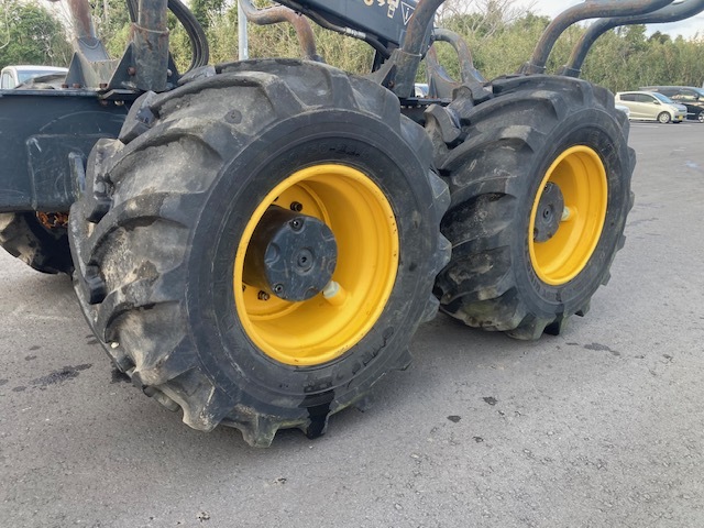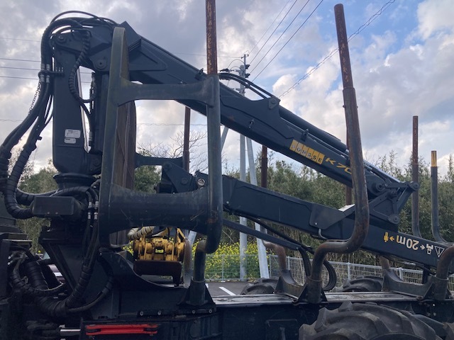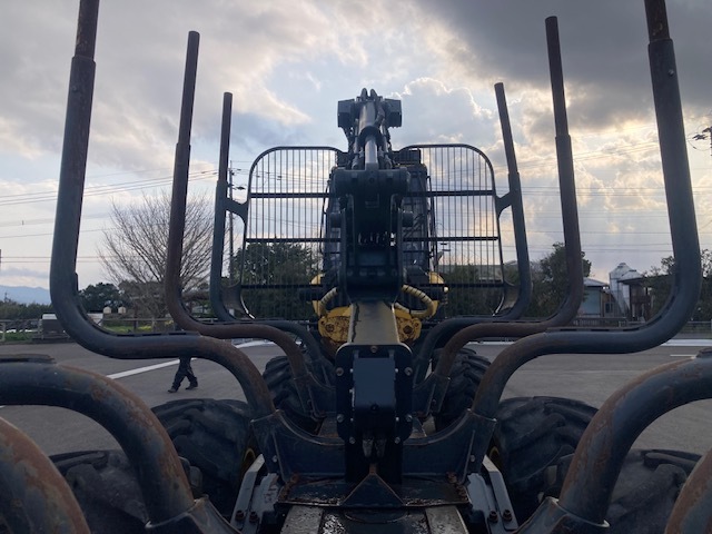 Forwarder 8-wheel cabin with wood grapple Weight (minimum 14700kg) Weight (standard 15400kg) Total length 9080-9330mm + slide portion 610mm. Overall width 2440-2690mm. Total height when stored: 3730mm. Ground height 600mm Turning angle ±44 degrees