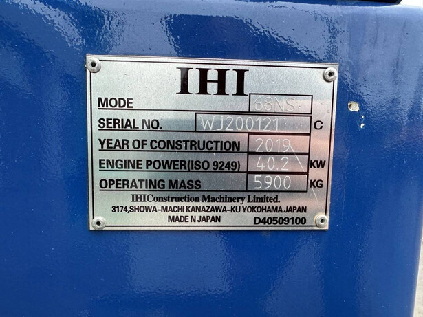 Brand: Ihi Type: 68 NS Serial number: WJ200121 Year of construction: 2019 Fuel: Diesel