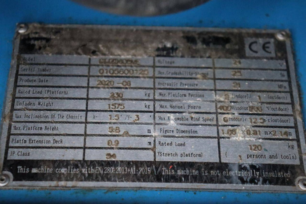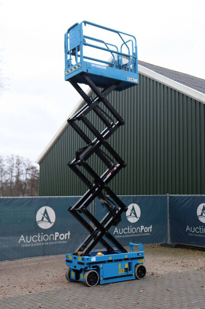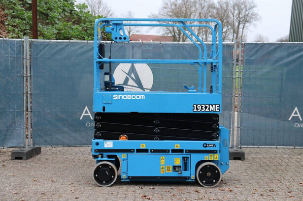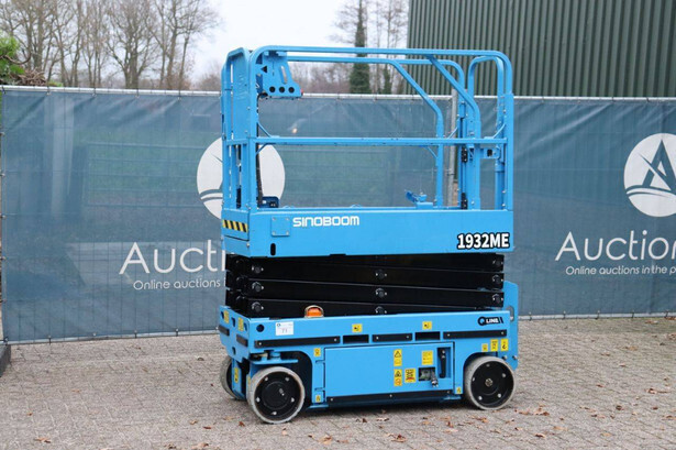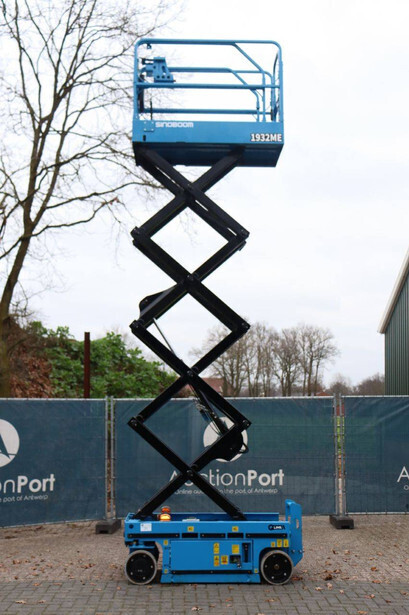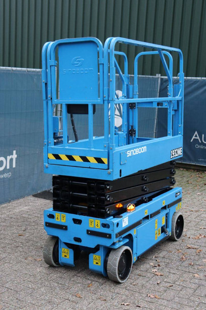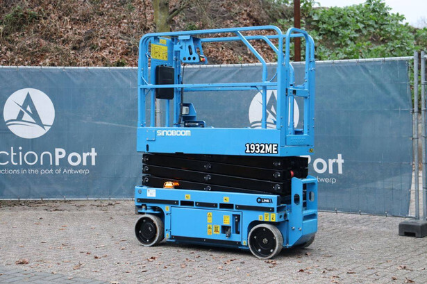 Brand: Sinoboom Type: 1932ME Serial number: 0105600729 Year of construction: 2020 Fuel: Electric Lifting capacity: 230 kg Working height: 5.8 m Reading operating hours: 100 h Machine weight: 1575 kg Chassis: Wheels Type: Scissor lift Tires: Non-marking tires Color: blue