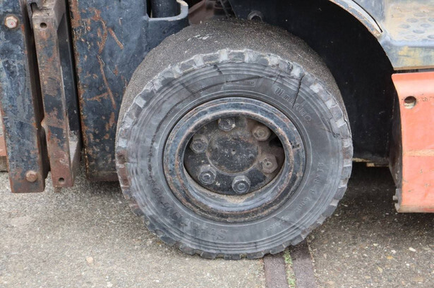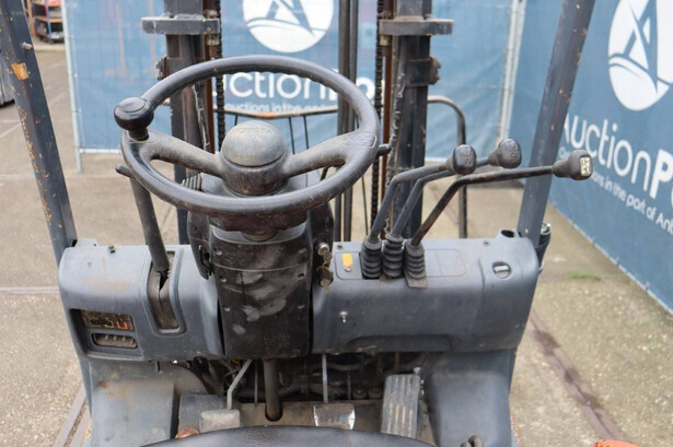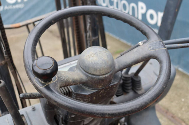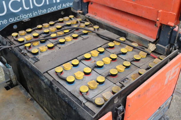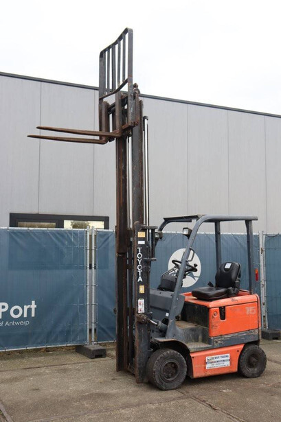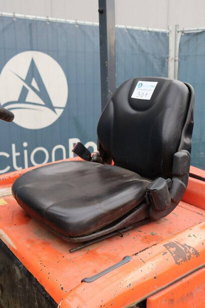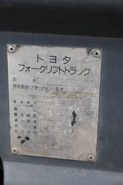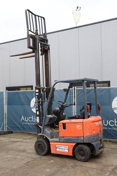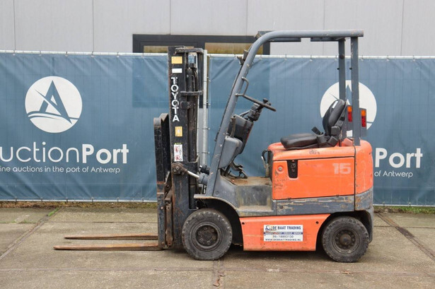 Brand: Toyota Type: FB15 Serial Number: Not known Year of construction: Not known Fuel: Electric Mast type: Duplex Sideshift: Yes Lifting capacity: 1500 kg Lifting height: 4000 mm Operating hours read: 30640 h Machine weight: Not known Tires: Solid tires Color: orange