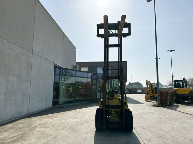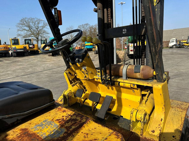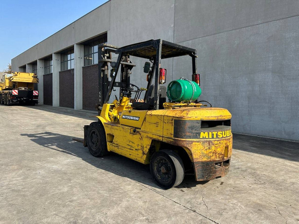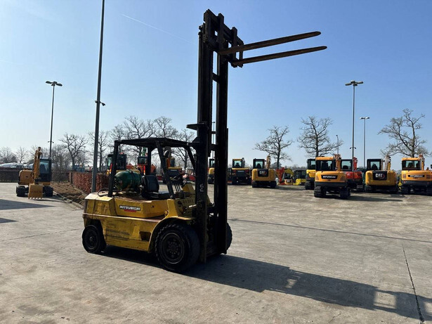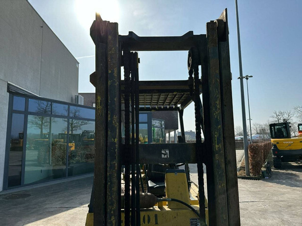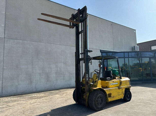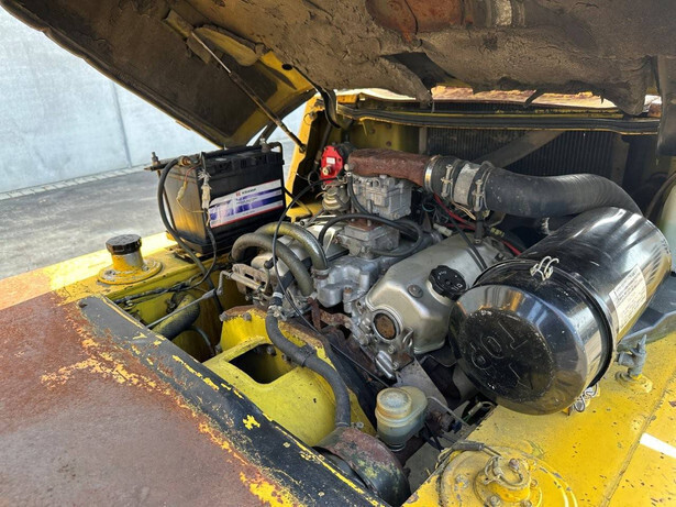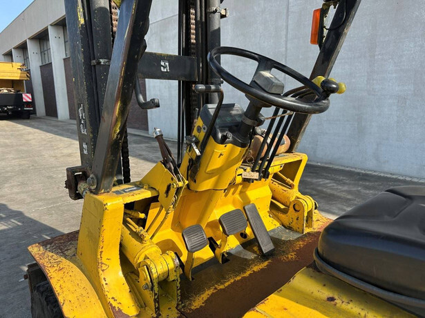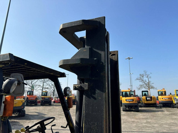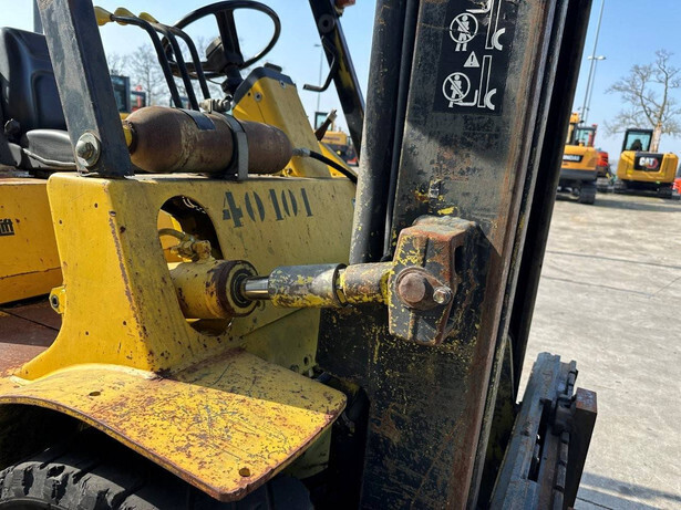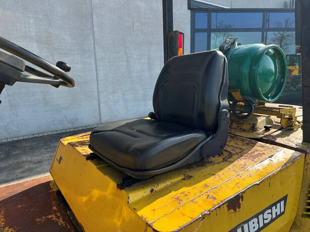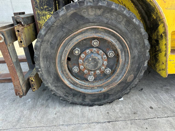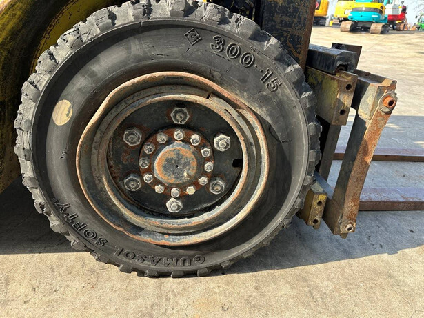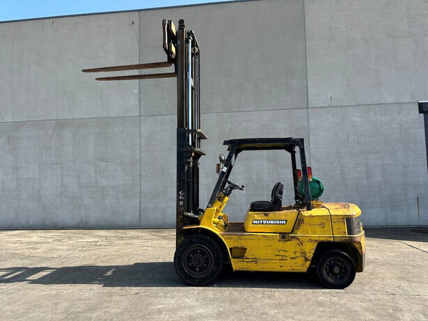 Brand: Mitsubishi Type: FG40 Serial number: F29-50048 Year of construction: 1989 Fuel: LPG Engine make and type: Mitsubishi V6 Cylinders: 6 Mast type: Duplex Sideshift: Yes Lifting capacity: 4000 kg Lifting height: 3500 mm Spoon length: 1600 mm Operating hours read: 5757 h Machine weight: 5820 kg Transport dimensions (L x W x H): 3300x1500x2500 mm Tires: Solid tires Front and rear wheels: 300-15 / 7.00-12 Color: yellow