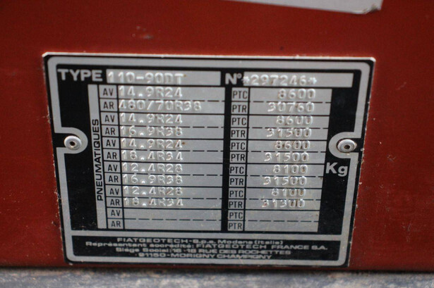Brand: Fiatagri Type: 110-90 DT Serial number: 297246 Year of construction: 1990 Fuel: Diesel Engine power: 110 p Operating hours read: 2589 h Tires: Pneumatic tires Color: red