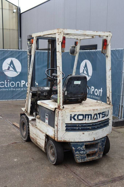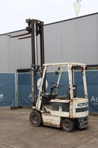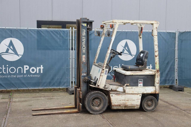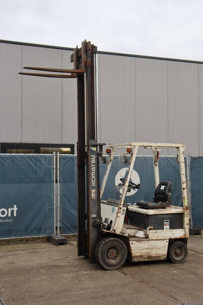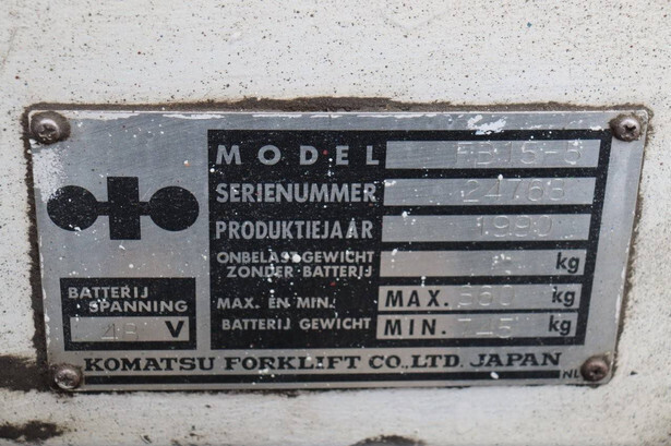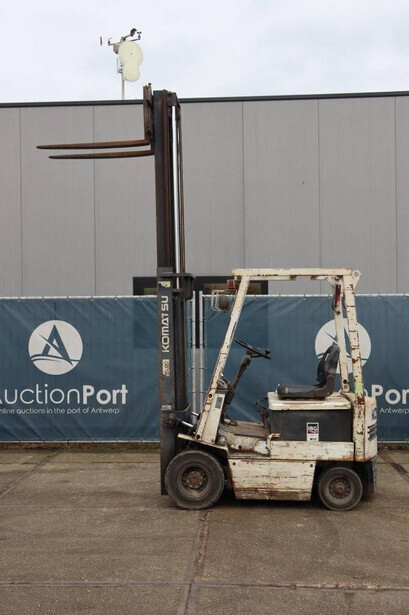 Brand: Komatsu Type: FB15-5 Serial number: 24768 Year of construction: 1990 Fuel: Electric Mast type: Duplex Sideshift: No Lifting capacity: Not known Lifting height: Not known Operating hours read: 55314 h Tires: Solid tires Color: white