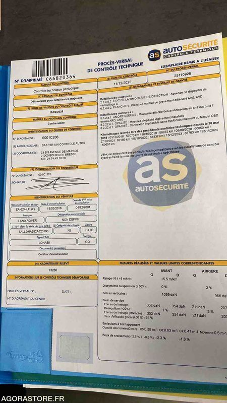 FR: Type de véhicule TS TERRAINS/CHEMINS Nb portes: 3 ÉTAT GÉNÉRAL MÉDIOCRE VOIR CONTRÔLE TECHNIQUE