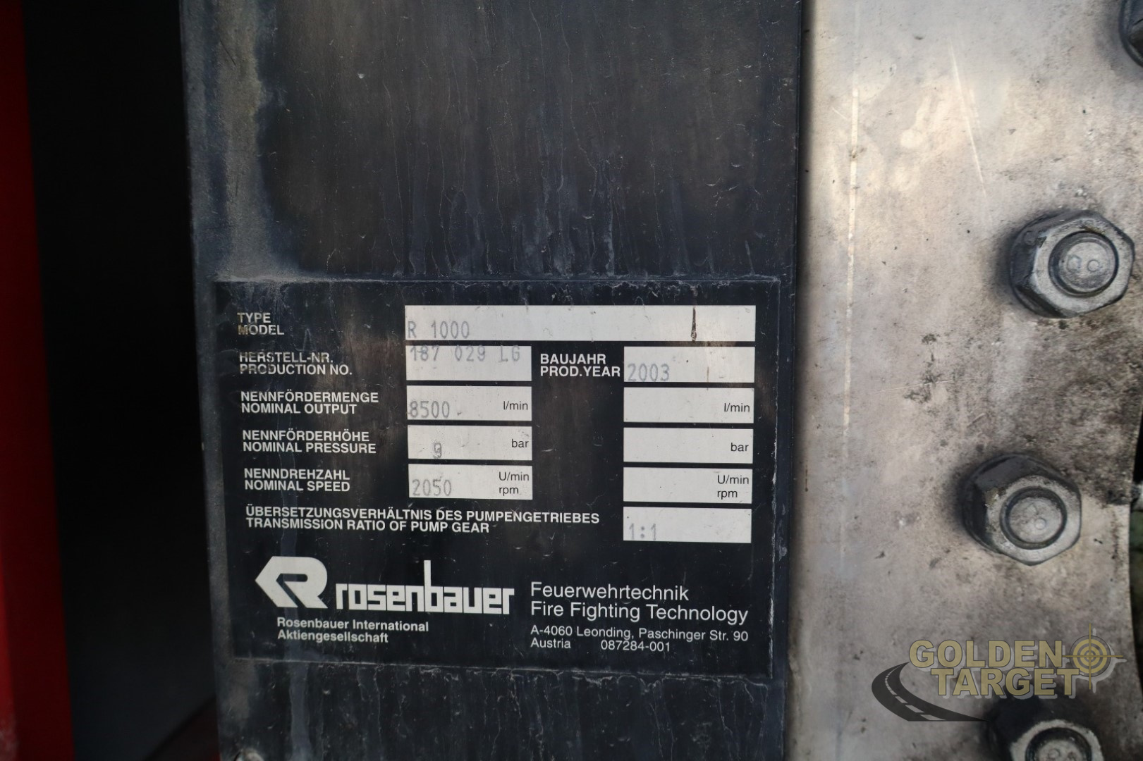 Rosenbauer System, R1000 Pump, 6 Cylinder MAN Diesel Engine for the Pump.