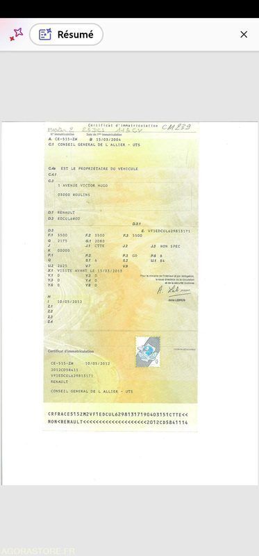 Renault MASTER Color: orange Power: 114 Engine volume: 2463 Fuel: diesel Axle 1 common tyre size: 225 65 r16 c Gearbox type: manual FR: Type de véhicule FOURGON