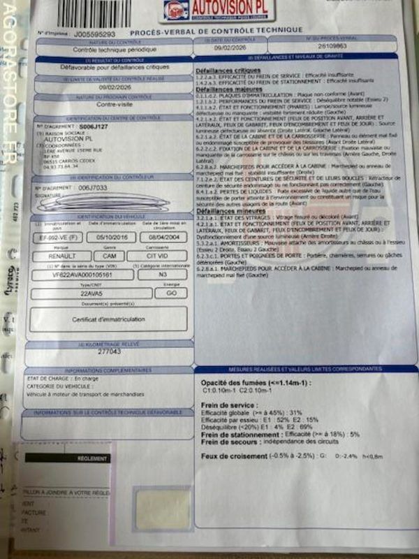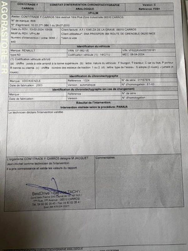 IMPORTANT: véhicule roulant avec interdiction de circuler/ TACKYGRAPHE HS