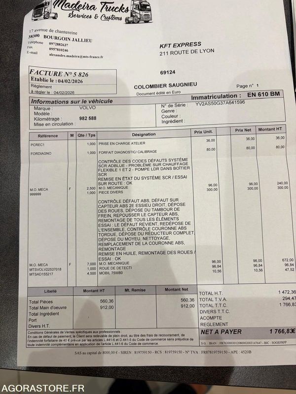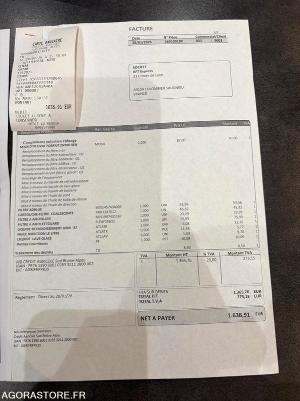 Factures d'entretien et contrôle technique en photo ci-dessus