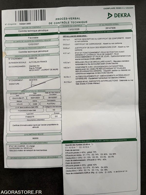 Fin de validité du contrôle technique 12/02/2027