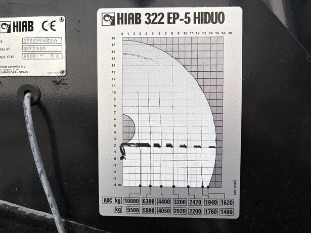 HIAB 322 EP-5 HIDUO, year of manufacture 2009, behind the cabExtendable superstructure: