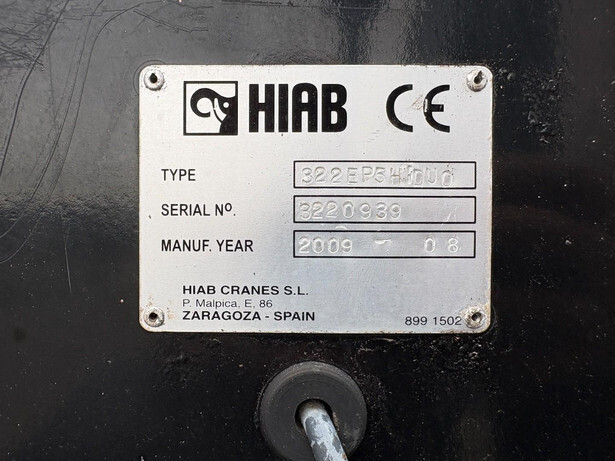 Crane: HIAB 322 EP-5 HIDUO, year of manufacture 2009, behind the cab