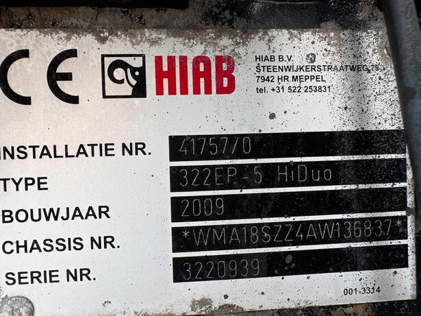 HIAB 322 EP-5 HIDUO, bouwjaar 2009, achter de cabineUitschuifbare opbouw: