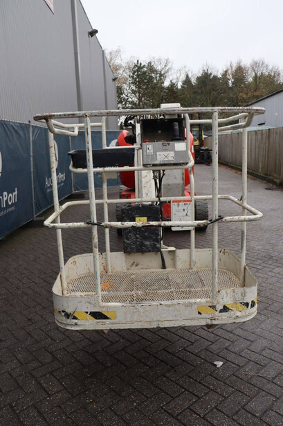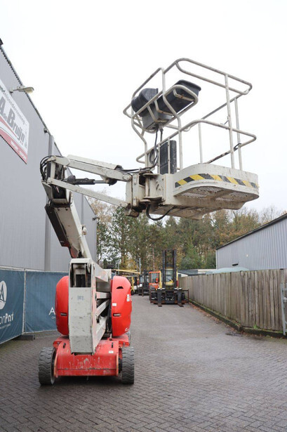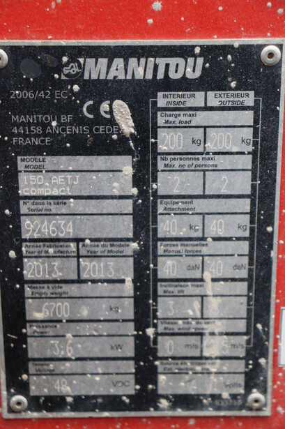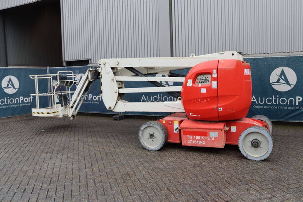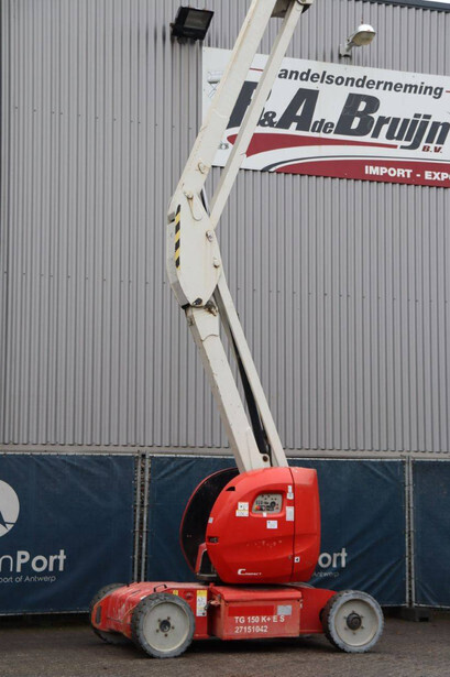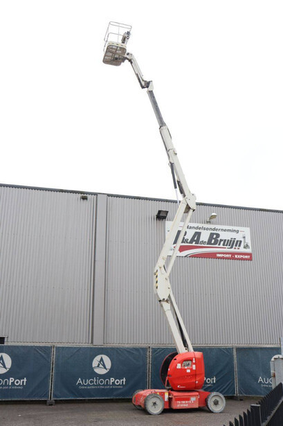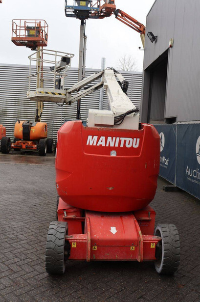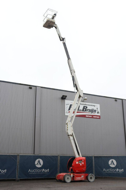Brand: Manitou Type: 150AETJ Compact Serial number: 924634 Year of construction: 2013 Fuel: Electric Lifting capacity: 200 kg Working height: 15 m Operating hours read: 65473 h Machine weight: 6700 kg Chassis: Wheels Type: Articulated boom lift Tires: Solid tires Color: red
