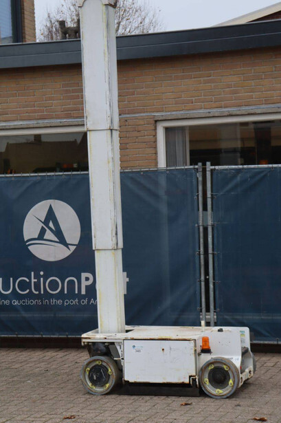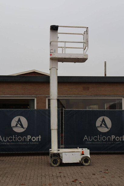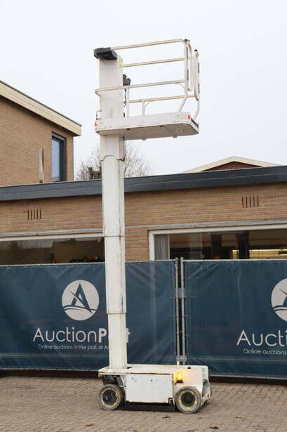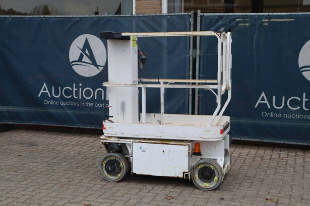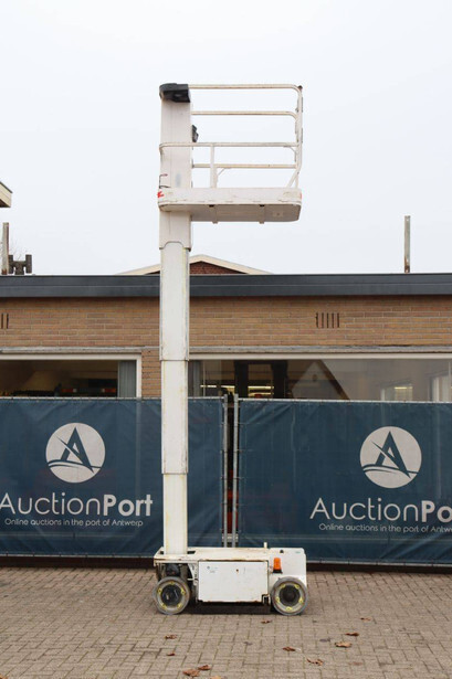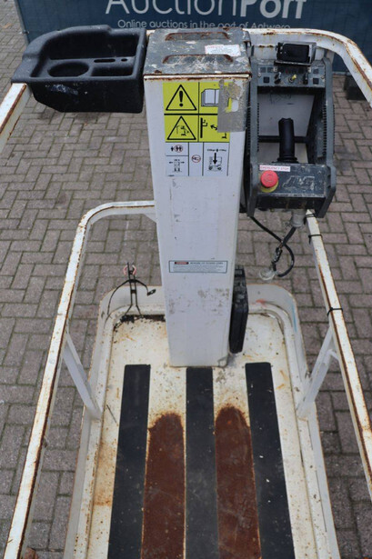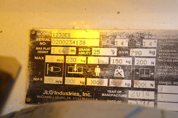 Brand: JLG Type: 1230ES Serial number: 0200234138 Year of construction: 2014 Fuel: Electric Lifting capacity: 230 kg Working height: 5.66 m Operating hours read: 579 h Machine weight: 790 kg Chassis: Wheels Type: Mast lift Tires: Non-marking tires Color: white