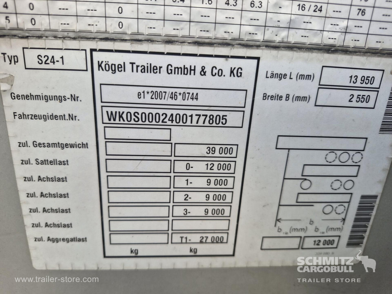 Remarks: **Exterior**\\Lift axle, Pallet box\\\\**Brake system**\\Disc brake, SAF\\\\**Tyre sizes**\\1. Achse: Tread depth: 7 mm / 7 mm, 2. Achse: Tread depth: 7 mm / 7 mm, 3. Achse: Tread depth: 7 mm / 7 mm\\\\----