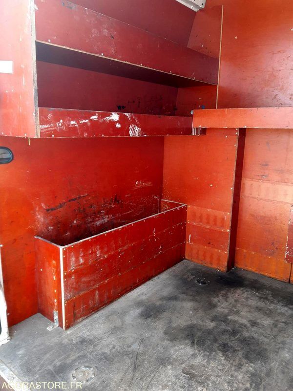 FR: Type de véhicule FOURGON IMPORTANT: VENTE EN L'ETAT Nb portes: 5 Etat carrosserie: Etat d'usage Etat intérieur: Bon état Etat des pneus: 40% usure Aménagements intérieurs et rangements: Etagères et cuve 150L Transmission: AVANT Version: L2H2 tôlé Etat soubassements: Etat d'usage Bridage 130Km/h Attelage Fourgon 3 places Cuve 150L GNR avec pompe ( manque tuyau et pistolet de distribution ) Placard bois Etagéres sur partie arrière Attelage