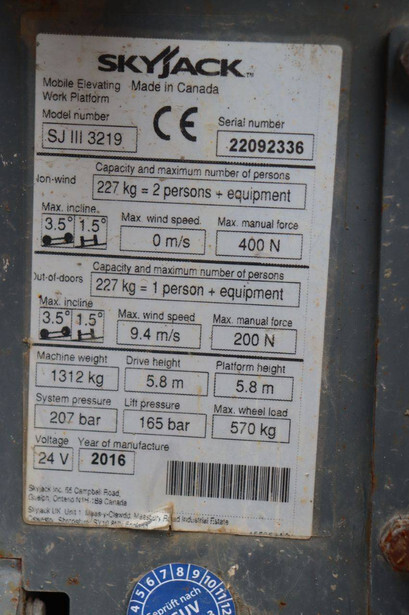 2016 SkyJack SJ 3219