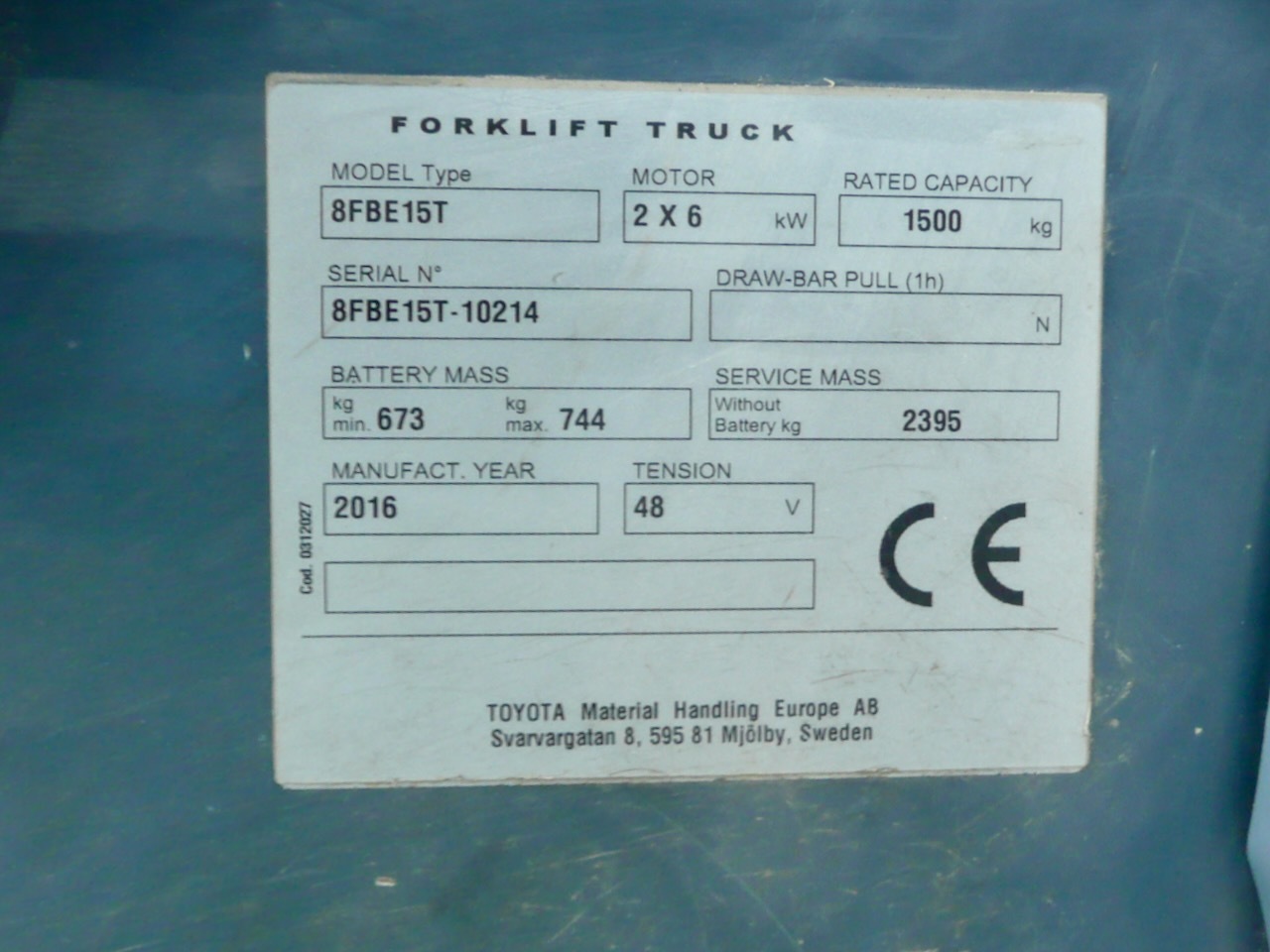 2016 Toyota 8FBE15T