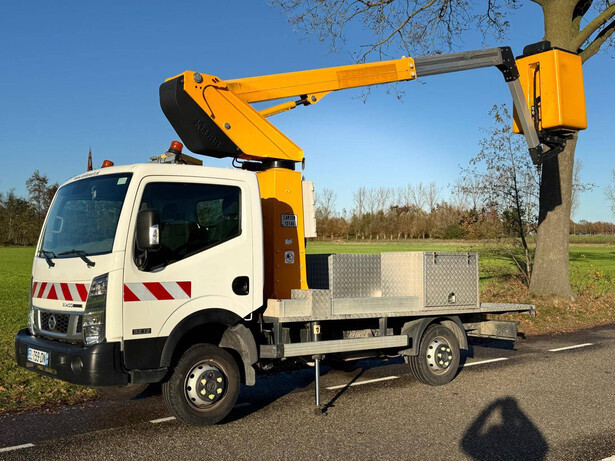 Brand: Nissan Type: Cabstar Klubb K26 Year of construction: 2017 Serial number: VWASUFF24F6184258 Fuel: Diesel Mileage reading: 28840 KM Lifting capacity: 120 kg Working height: 11.8 m Reading operating hours: 1630 h Tires: Pneumatic tires Color: white