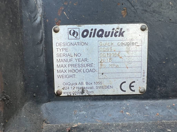 Used quick coupler with connection Oilquick OQ65. Pin: 65 mm – Stick 220 mm – center to center bolt 405 mm.