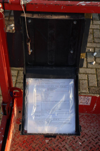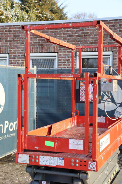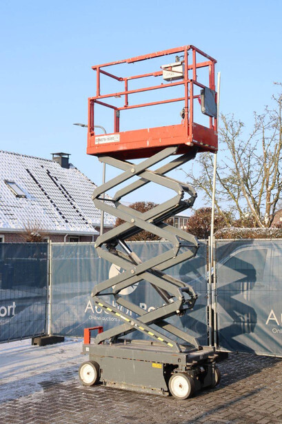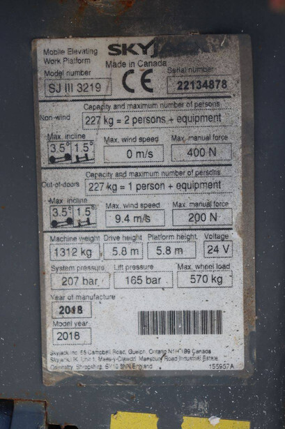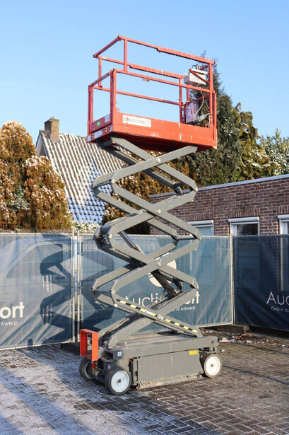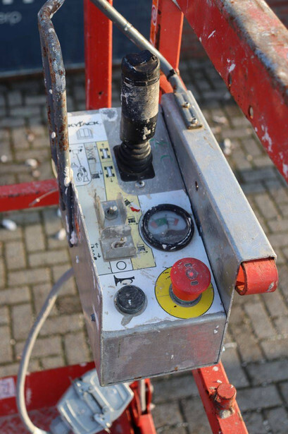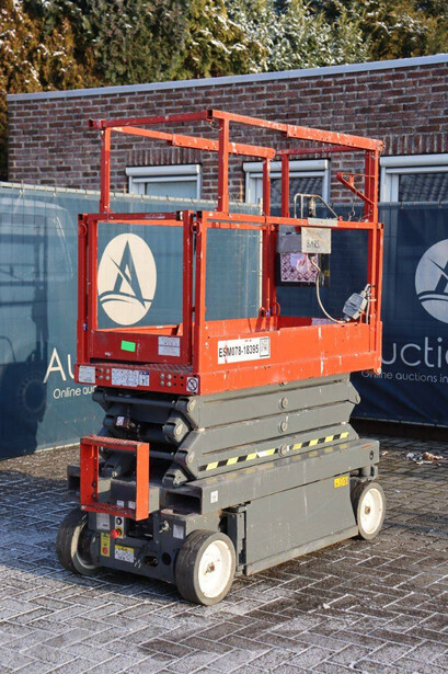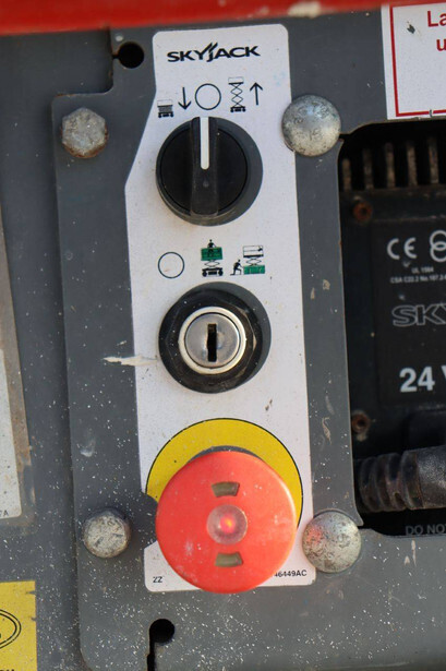 Brand: Skyjack Type: SJ 3219 Serial number: 22134878 Year of construction: 2018 Fuel: Electric Lifting capacity: 227 kg Working height: 7.8 m Operating hours read: 438 h Machine weight: 1312 kg Chassis: Wheels Type: Scissor lift Tires: Non-marking tires Color: red