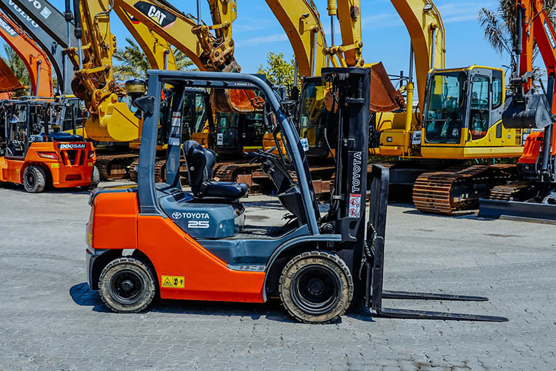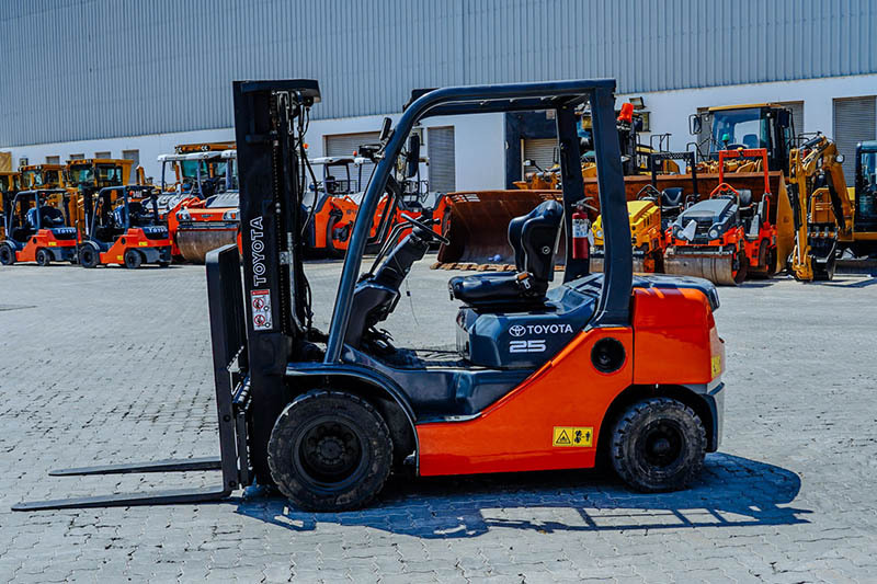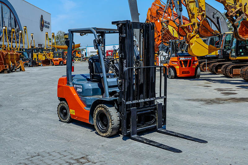 2.5 Ton, 3 Stage Mast, Full Free Lift, 189 in Max Lift Height, 84 in Lowered Mast Height, 48 in Forks, Hydraulic Side Shift, Solid Pneumatic Tires, 2018 US EPA Label, Toyota JTIEL01.81ZS 3 Cylinder 1.7 L Diesel Engine