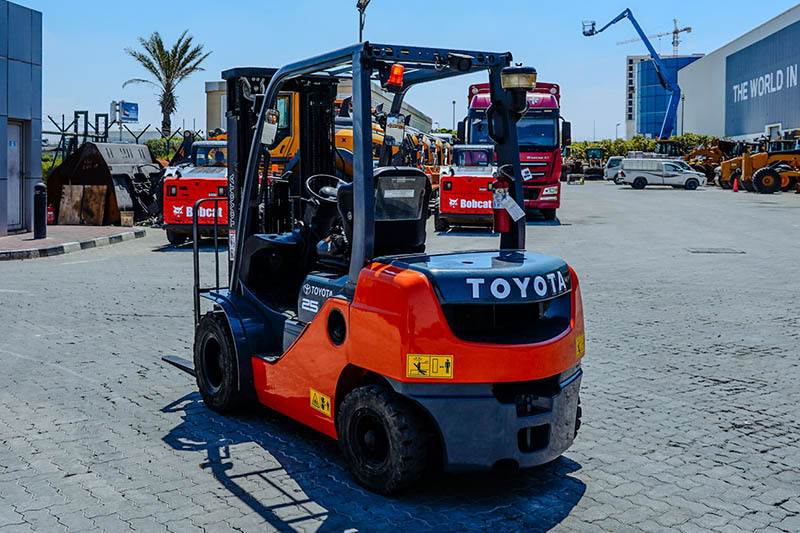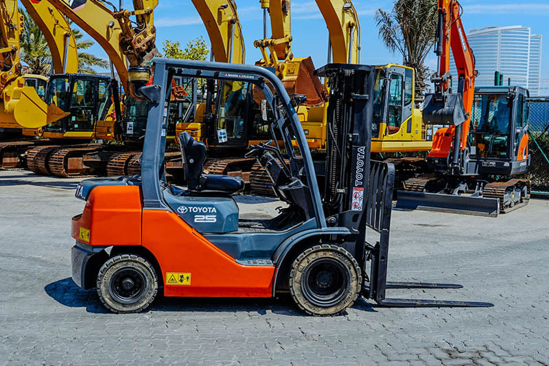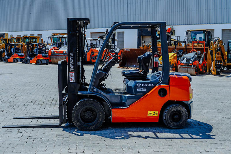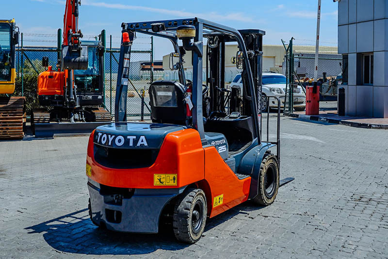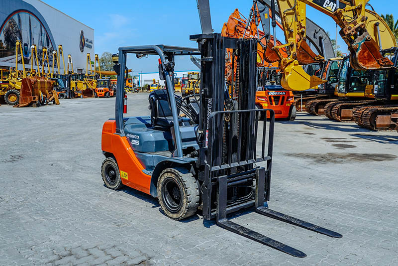 2.5 Ton, 3 Stage Mast, 189 in Max Lift Height, 83 in Lowered Mast Height, 48 in Forks, Hydraulic Side Shift, Solid Pneumatic Tires, 2018 US EPA Label, Toyota 3 Cylinder 1.8 L Diesel Engine