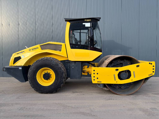The Bomag BW 213 D-5 is a robust and efficient self-propelled roller. Powered by a 95 kW Deutz TCD 3.6 L4 engine, this machine complies with both EPA and CE standards, ensuring high performance and environmental friendliness. It features an EROPS cabin with air conditioning, speed meter, and backup alarm, offering a comfortable and secure operator environment. This unit, manufactured in Germany in 2019, has 4843 hours of operation and remains in very good and clean condition. With a sizeable weight of 12,510 kg and dimensions of 5.90 x 2.28 x 3.01 meters, it is ideal for large-scale compaction tasks.