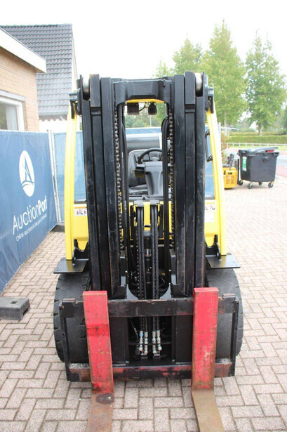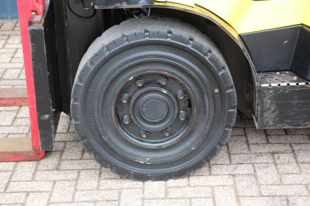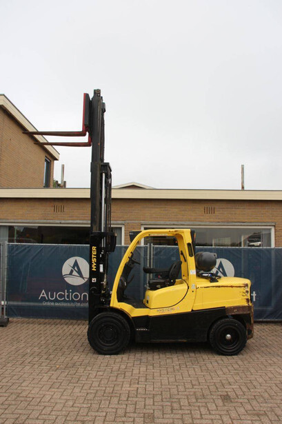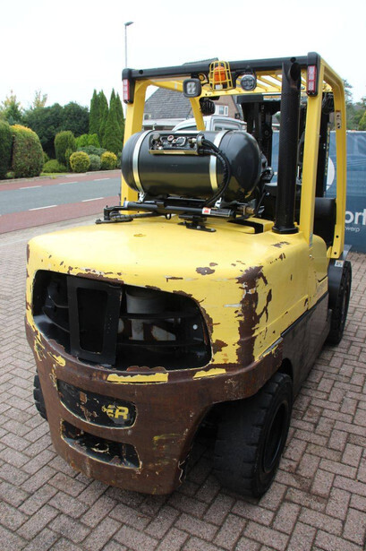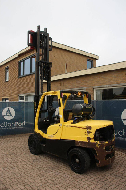 Brand: Hyster Type: H5.5FT Serial number: U005B0519T Year of construction: 2019 Fuel: LPG Mast type: Triplex Sideshift: No Lifting capacity: 5490 kg Lifting height: 4147 mm Reading operating hours: 14313 h Machine weight: 7970 kg Tires: Solid tires Color: yellow