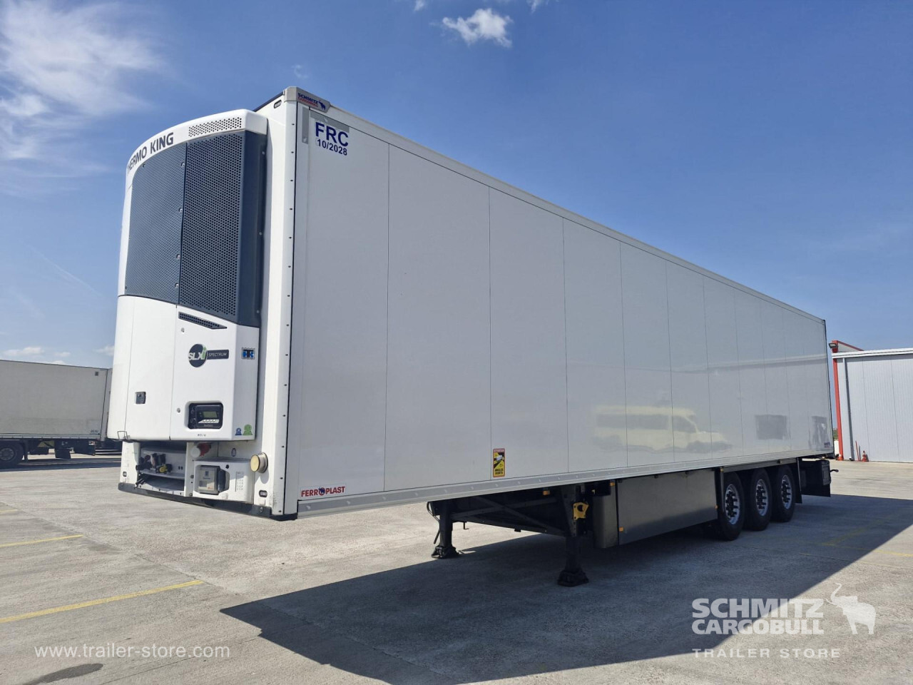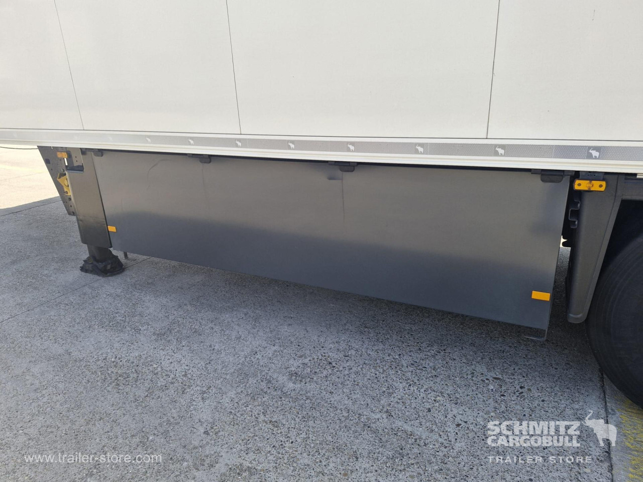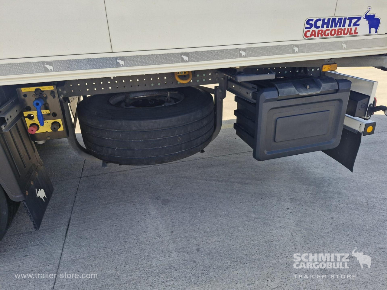 **Safety**\\Rear underrun, Antilock Braking System ABS\\\\**Exterior**\\Air suspension, Pallet box, 1x15 and 2x7 pin plug, Antispray\\\\**Brake system**\\Disc brake, Schmitz Cargobull\\\\**Floor**\\Aluminum floor\\\\**Cooling unit**\\Thermoking SLXi Spectrum, Diesel/Elektro, 9.800 Operating hours Diesel\\\\**Tyre sizes**\\1. Achse: 385/65 R22.5 , Tread depth: 7 mm / 7 mm, 2. Achse: 385/65 R22.5 , Tread depth: 7 mm / 7 mm, 3. Achse: 385/65 R22.5 , Tread depth: 7 mm / 7 mm\\\\----