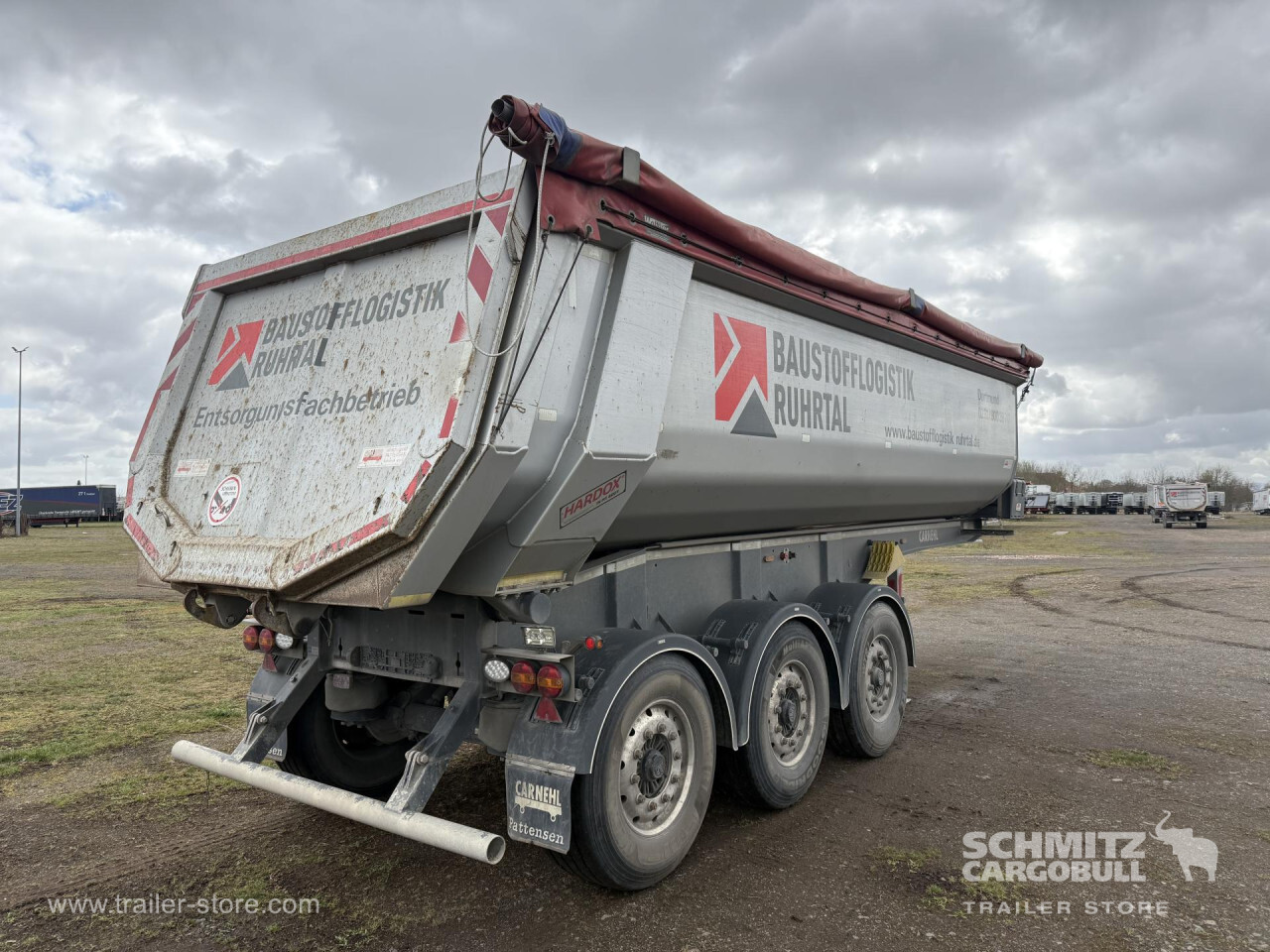 Remarks: **Safety**\\Hinged rear underrun, Antilock Braking System ABS\\\\**Exterior**\\Air suspension, Lift axle front, Toolbox, Exterior pendulum tailgate, Roof rolling tarpaulin, Access platform, 1x15 pin plug, Light alloy rims\\\\**Brake system**\\Disc brake\\\\**Loading area**\\Length 7.200 mm, Width 2.340 mm, Height 1.600 mm, Volume 26 m³\\\\**Tyre sizes**\\1. Achse: 385/65 R22.5 , Tread depth: 13 mm / 9 mm, 2. Achse: 385/65 R22.5 , Tread depth: 10 mm / 9 mm, 3. Achse: 385/65 R22.5 , Tread depth: 11 mm / 10 mm\\\\**Other dimensions and weights**\\GVW: 35.500 kg\\\\----