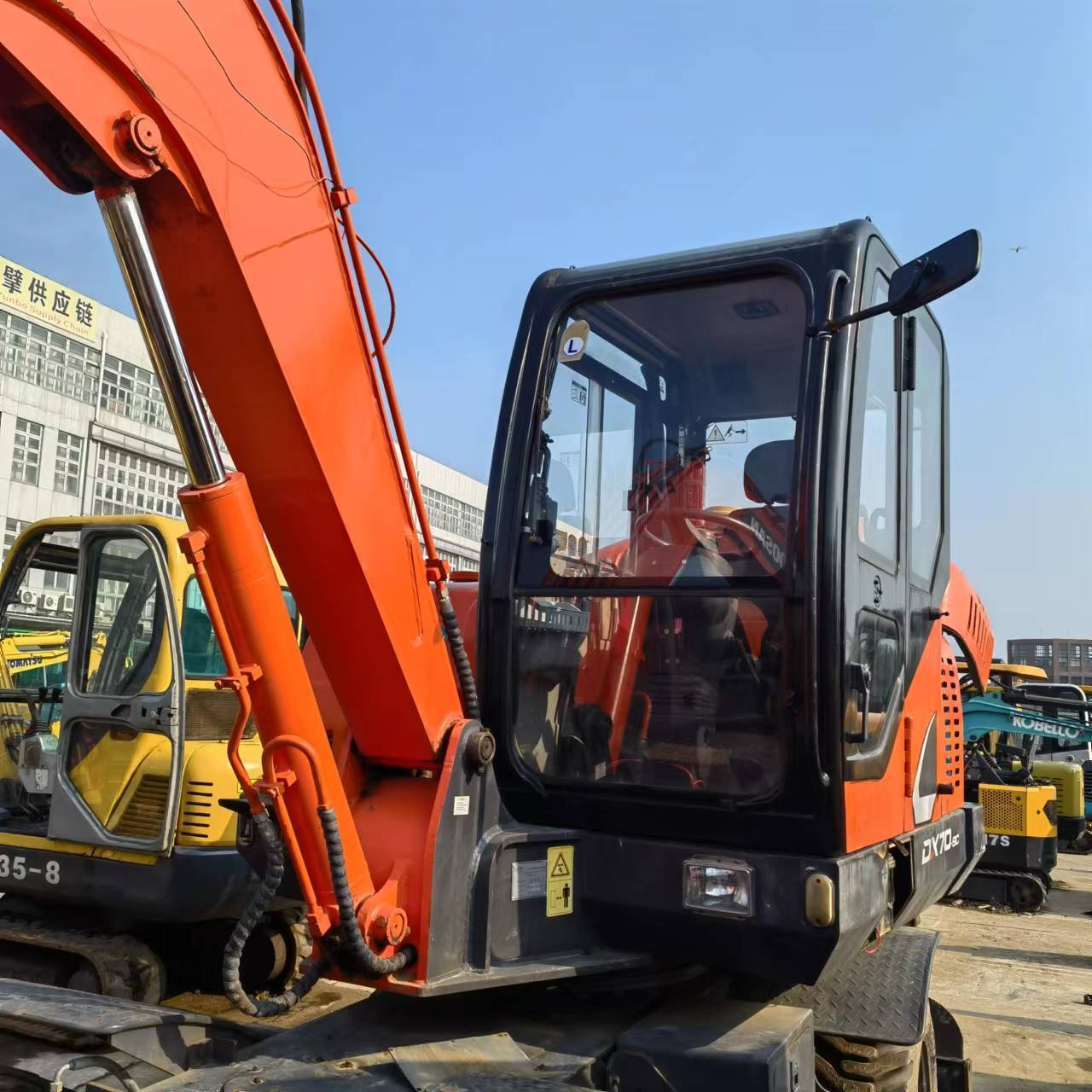 Technical Specification Report: Doosan DX70-9C Crawler Excavator Brand & Model: Original Doosan DX70-9C high-performance crawler excavator, specifically designed for versatile urban and earthmoving tasks. Engine Specifications: Powered by a fuel-efficient Yanmar 4TNV98-VDB direct injection engine, delivering a rated power of 43.1 kW (58 hp). Operating Weight: Features a standard operating weight of 7,000 kg (7 Tons), providing excellent stability and powerful breakout force. Digging Performance: Offers a maximum digging depth of 4,090 mm and a maximum digging reach of 6,245 mm for superior site coverage. Hydraulic Efficiency: Equipped with a premium hydraulic system for smooth multi-function coordination and enhanced fuel economy. Durability & Maintenance: Features a reinforced chassis and easy-access service points to minimize downtime and reduce long-term maintenance costs.