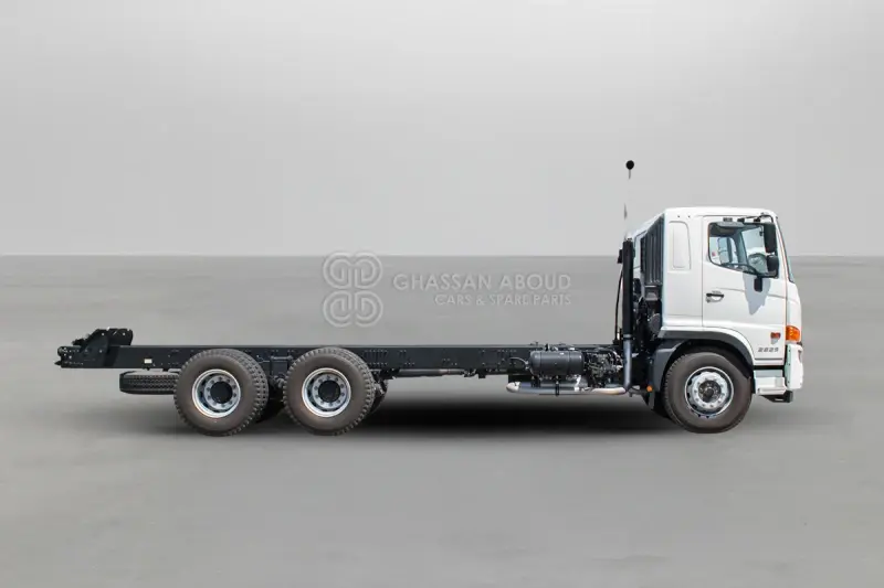 Hino 500 FM 6x4 Chassis Vehicle Code HNFM023001 Ownership Status New Horsepower 258 HP Payload 21 Tons Axle Configuration 6X4 Emission Euro 3 Country Of Origin Japan Engine Model J08E-WB, Turbo 6 Cylinder Displacement / Power Rating 7,684 Cc GVWR / Max Gross Weight 28,000 Kg Dimension (L×W×H In Mm) 9,485 X 2,490 X 3,340