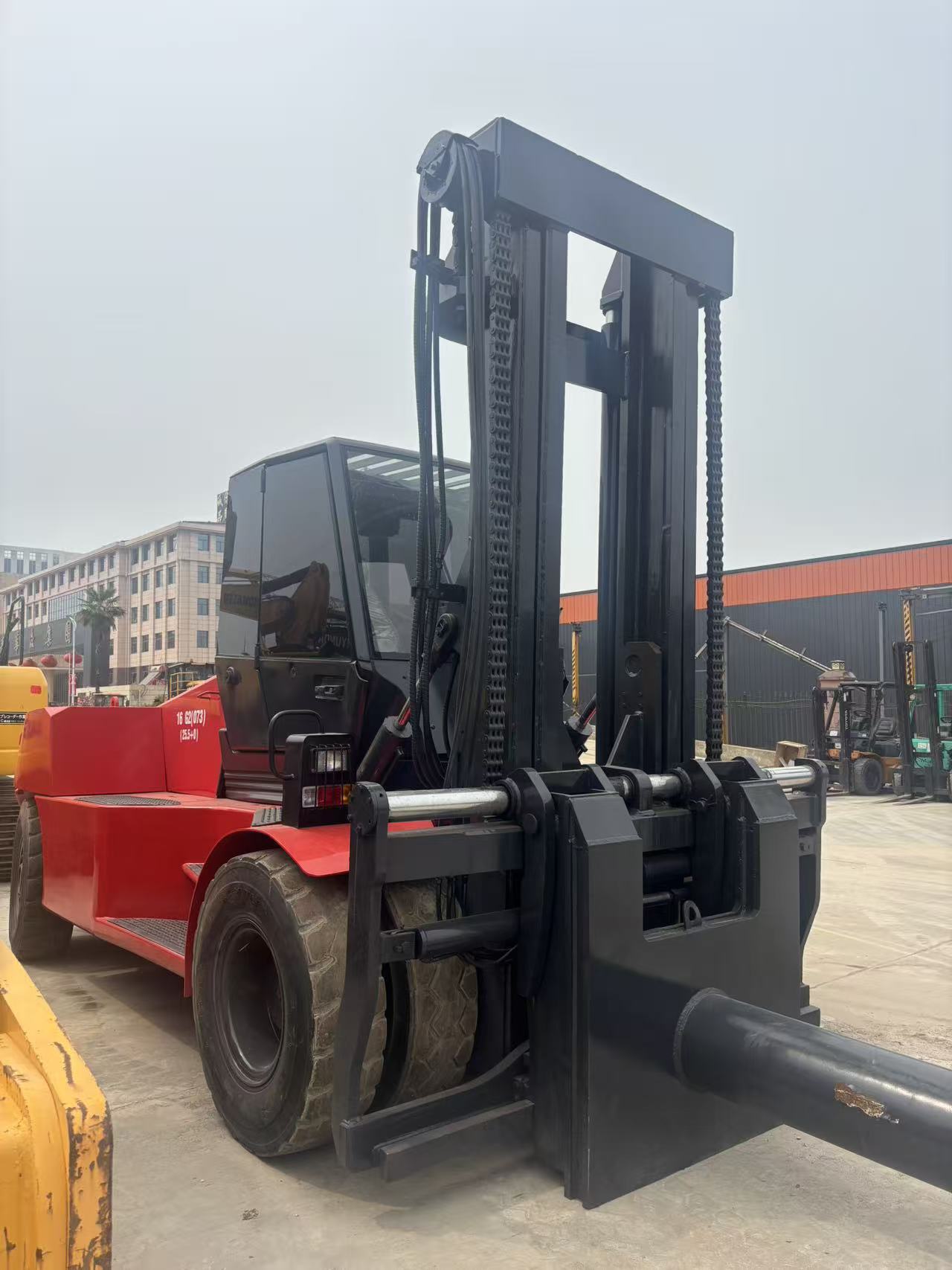 Rated load capacity of 16 tons, load center distance of 600mm, standard high-strength box-type chassis and heavy-duty drive axle, strong torsional and impact resistance. Utilizing CAE-optimized design and wide-base heavy-duty tires, it boasts high lateral stability and is less prone to tipping under heavy loads. Standard wide-view mast and tilting end buffer enhance operator visibility and safety. Strong compliance: The engine meets China III/Euro III emission standards, allowing export to most countries and regions. High cost-effectiveness: Priced 30%-40% lower than European and American brands for the same tonnage, while offering similar performance and reliability, and high resale value. Flexible configuration: Customizable with different lifting heights and attachments (paper roll clamps, fork extensions, etc.), suitable for various scenarios such as ports, steel mills, and warehouses. Transportation friendly: Compact overall size facilitates container/flat rack transport, reducing export logistics costs. whatsapp:+86 17701318363 phone number: +86 15256560234 email: [email protected]