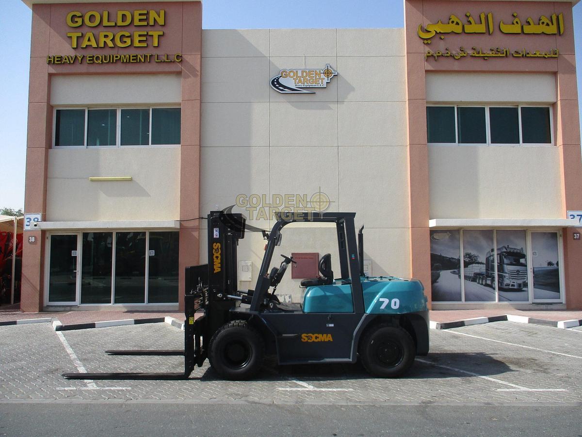 Unused SOCMA HNF70 Forklift 2024, ISUZU 6BG1 6 Cylinder Diesel Engine; 112 HP; 7ton Max Load Capacity; 1800 mm Forks, Side Shift and Fork Positioner, 4 meter Triplex Mast. CE Certified