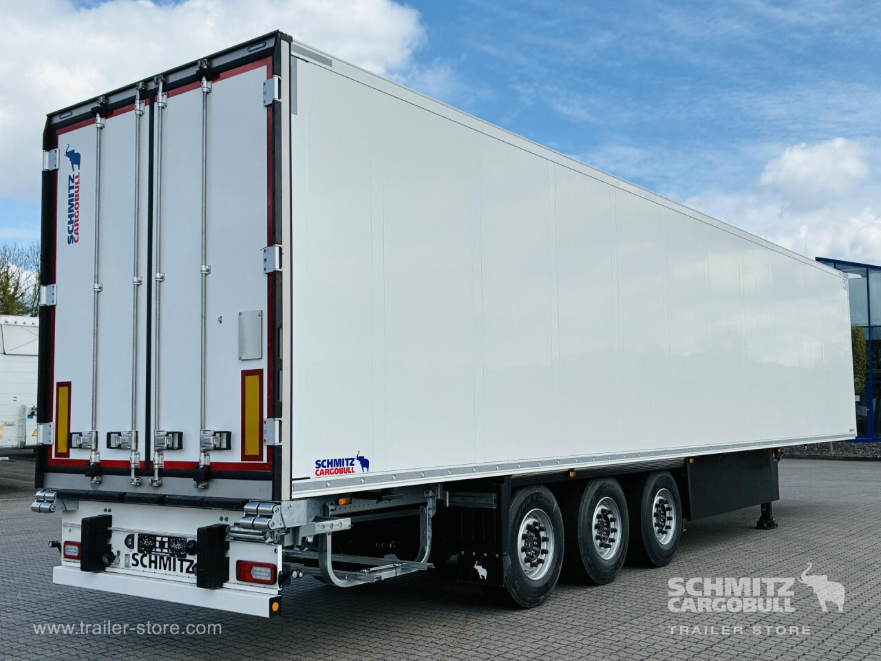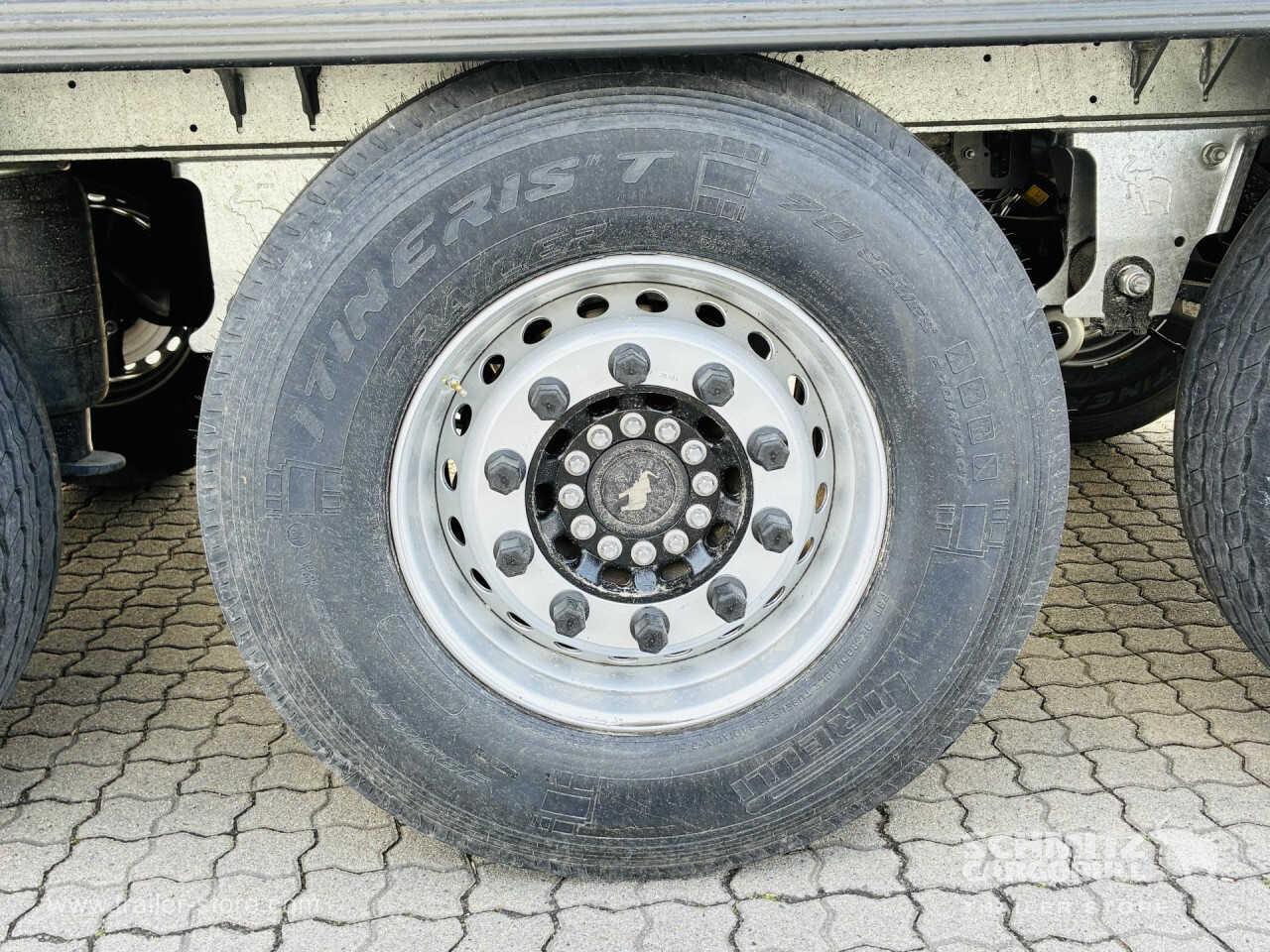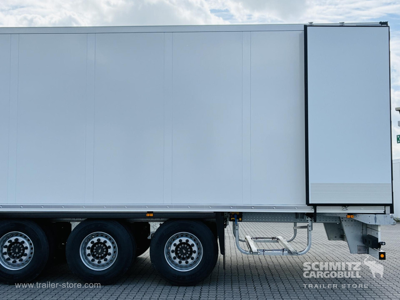 Remarks: **Safety**\\Rear underrun, Antilock Braking System ABS, Telematics system\\\\**Interior**\\ISO partition wall preparation, Temperature recorder, Double deck with beams\\\\**Exterior**\\Air suspension, Lift axle front, Pallet box, Spare wheel carrier double, Bolted chassis, Gantry doors, 1x15 and 2x7 pin plug, Antispray, Dynamic ramp protection (DRP)\\\\**Cargo securing**\\Load securing rail\\\\**Brake system**\\Disc brake, Schmitz ROTOS\\\\**Floor**\\Aluminum floor\\\\**Wand**\\Stirnwand verstärkt\\\\**Wall**\\Frontwall recess for cooling, Wall thickness45 mm\\\\**Cooling unit**\\Carrier Vector 1550\\\\**Loading area**\\Length 13.403 mm, Width 2.490 mm, Height 2.650 mm, Volume 88 m³\\\\**Tyre sizes**\\1. Achse: 385/65 R22.5 , Tread depth: 15 mm / 15 mm, 2. Achse: 385/65 R22.5 , Tread depth: 15 mm / 15 mm, 3. Achse: 385/65 R22.5 , Tread depth: 15 mm / 15 mm\\\\**Other dimensions and weights**\\Payload: 30.318 kg, GVW: 39.000 kg\\\\----